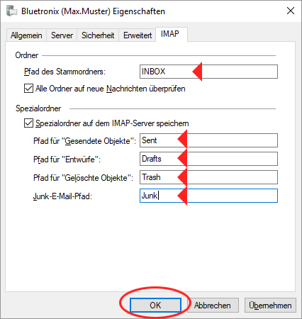 IMAP Ordner Einstellungen prüfen